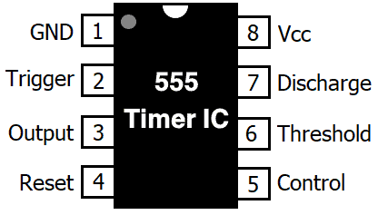 - 555 timer is available as an 8-Pin Dual in Line Package (DIP), 8-Pin Metal Can or 14-Pin Dual in Line Package (DIP).