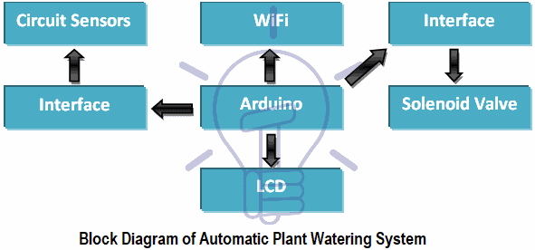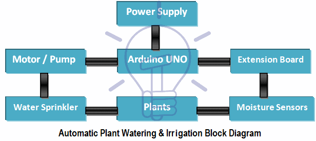 The functionality of block diagram shown in above figure of the automated plant watering system is illustrated below: