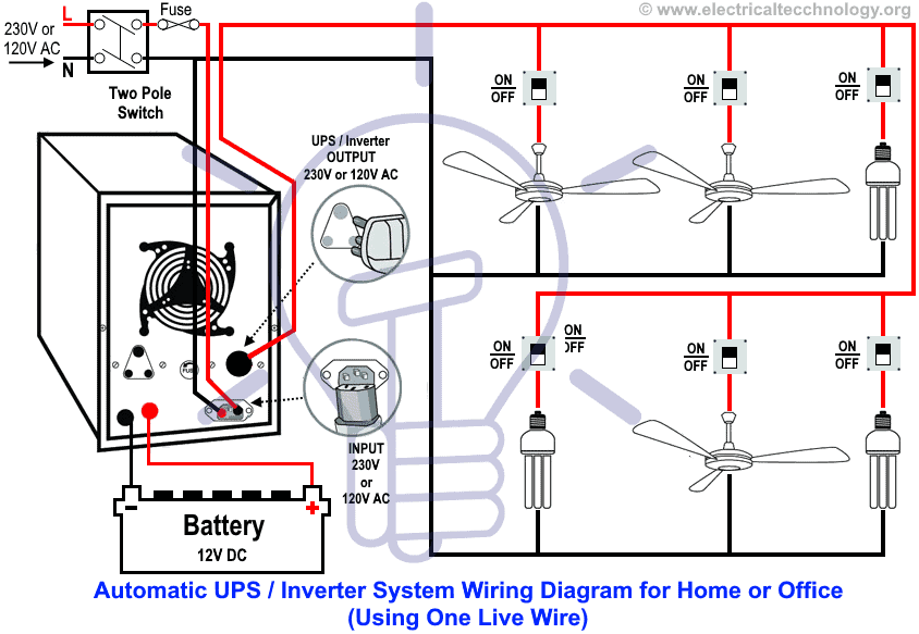 Automatic UPS System Wiring Circuit Diagram (One Live Wire & Ordinary Wiring)