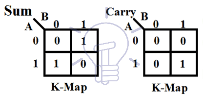 According to the truth table of half adder and the K-map, the SOP expression for “Sum” is: