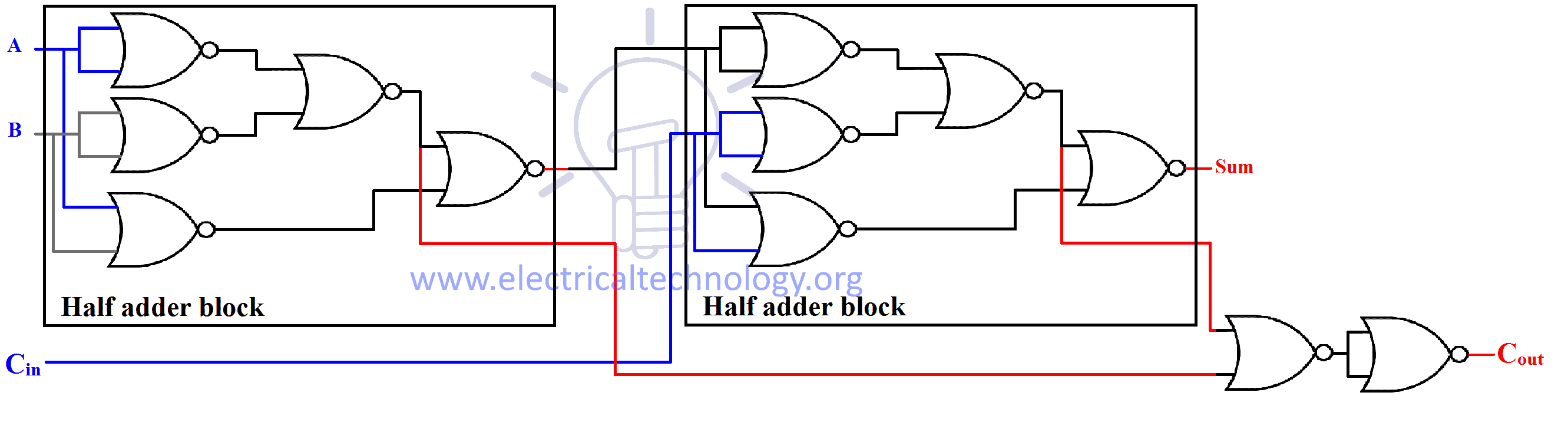 Sum = CinXOR (HA_sum_1) (HA_sum_1; sum of first half adder whose input is A,B)