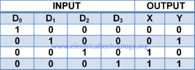 The truth table of 4-2 Encoder is given below:
