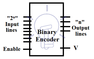 It has 2n input lines and “n” output lines. When we want to process data received from many data lines and we have few available input ports or we want to conserve the input ports of a system then we apply an encoder to reduce the number input data lines. Block diagram of binary encoder is given below.