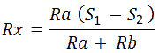For earth Fault or short circuit fault in the cables, the switch key is first thrown to position 1, the variable resistance S is varied till the bridge is balanced for resistance value of S1. So,