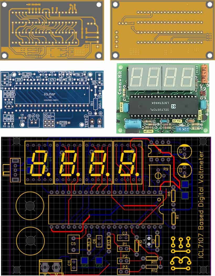 Following are the three PCB layouts of Mini Digital Voltmeter using ICL7107 with final circuit.