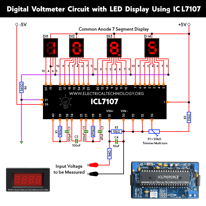 Circuit Diagram of Digital Voltmeter Using Using ICL7107