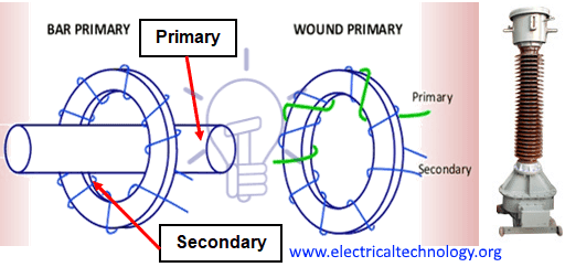 “Ring type” CT is constructed of an iron toroid, which forms the core of the transformer, and is wound with secondary turns. The doughnut fits over the primary conductor, which constitutes one primary turn.
