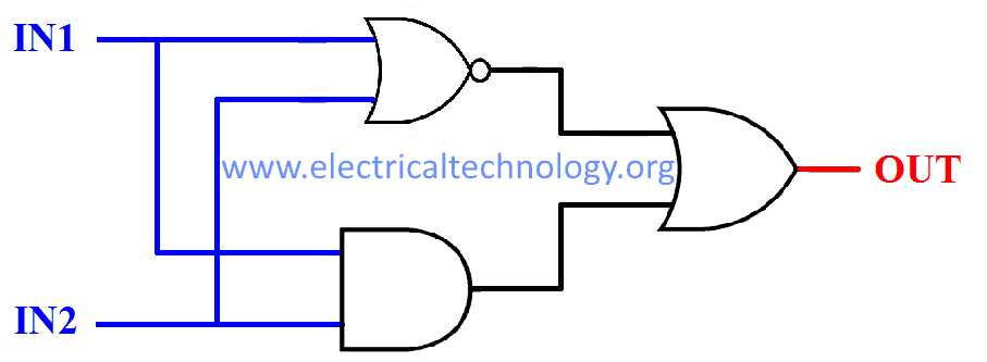 OUT = { (I̅N̅1̅ & I̅N̅2̅) + (IN1 & IN2) }