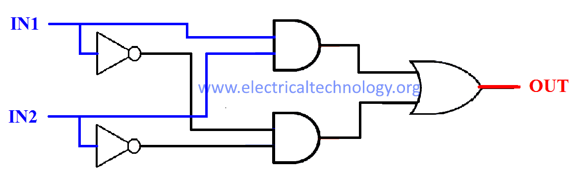 OUT = ( I̅N̅1̅ & I̅N̅2̅) + (IN1 & IN2) or OUT = (I̅N̅1̅ + IN2) & (IN1 + I̅N̅2̅)