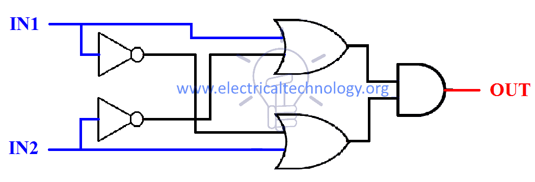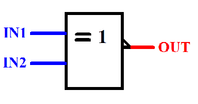OUT = { (I̅N̅1̅ + IN2) & (IN1 + I̅N̅2̅) }
