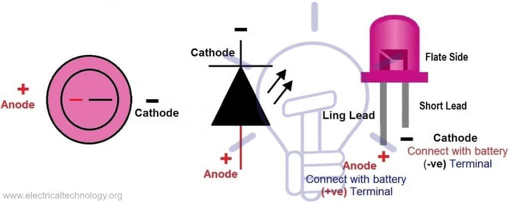 - Find the LED terminal i.e. anode and cathode (as shown in above fig)