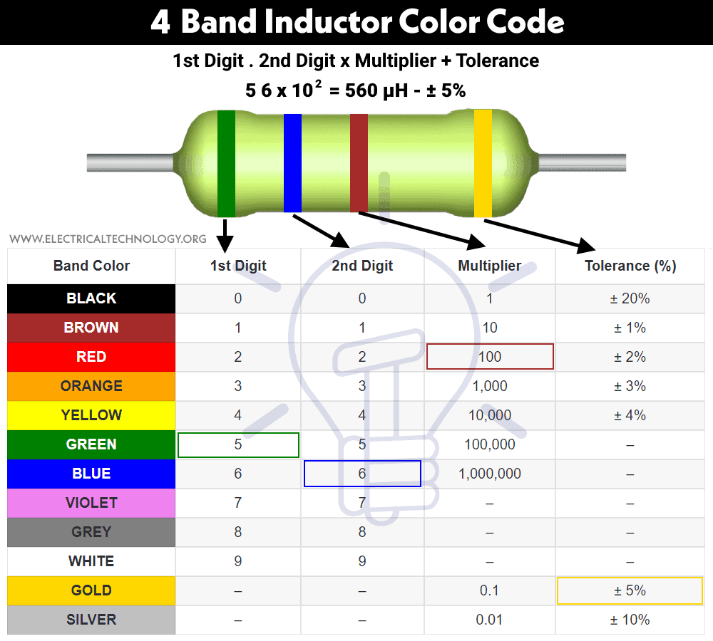 How to know the Value of Inductance of an Inductor using Standard & Color Codes – Calculators & Examples