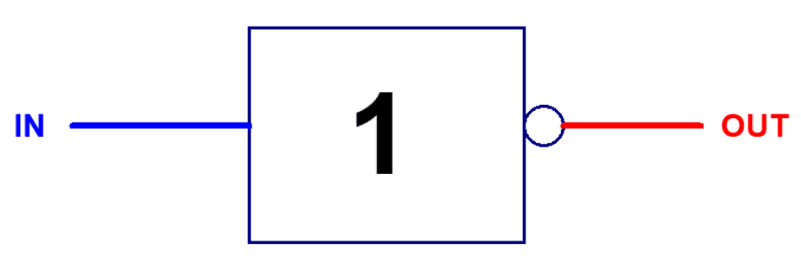 If IN is the input and OUT is the output, then if IN = 0, then OUT = 1