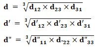 - d”11, d”22, d”33: distance between conductors of phase 1 (2 and 3) of line 1 and line 2