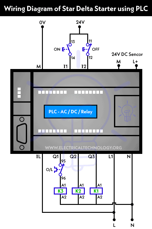 Wiring Diagram of Y-Δ Starter using PLC